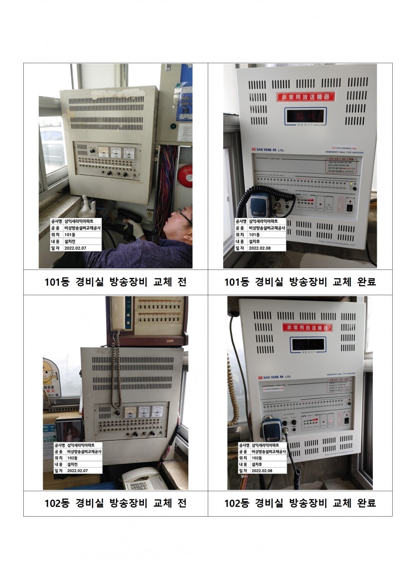 ■ 총 평 : 노후되고 고장난 경비실 방송 앰프를 대체하여 최신 벽부형 비상 방송 장비로 교체 완료.